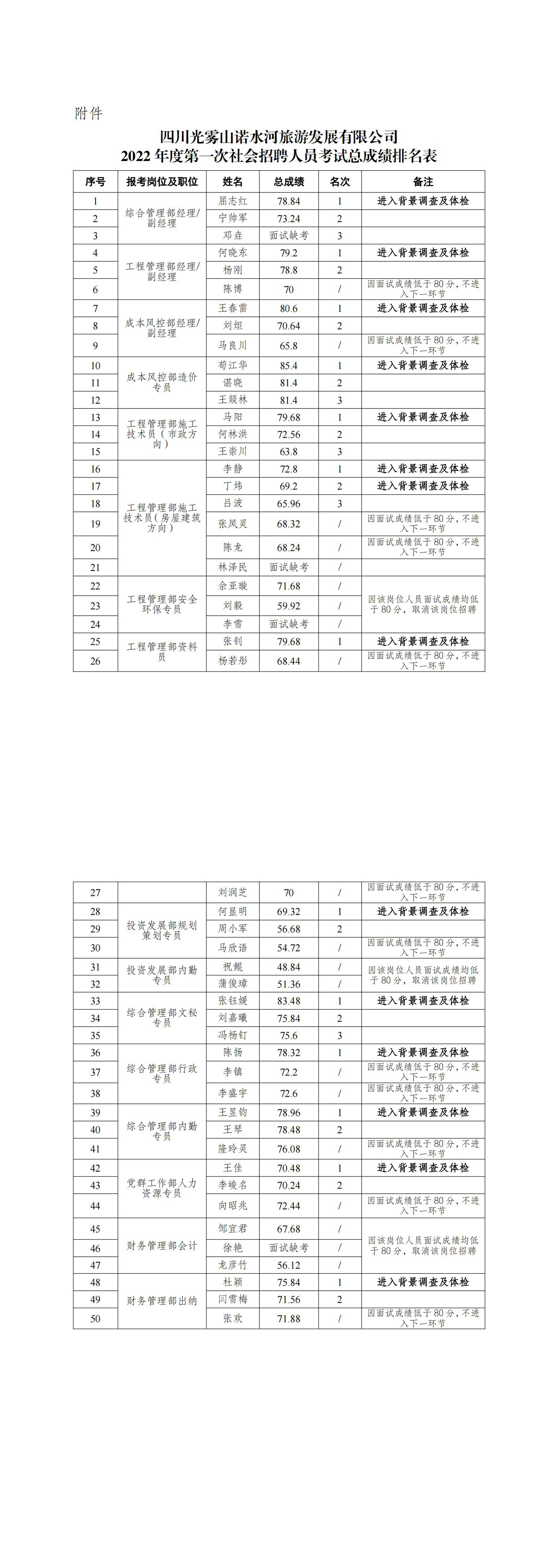 附件(jiàn):宣漢縣旅遊局2022年(nián)度第一(yī)次社會(huì)招聘人(rén£)員(yuán)考試總成績排名表