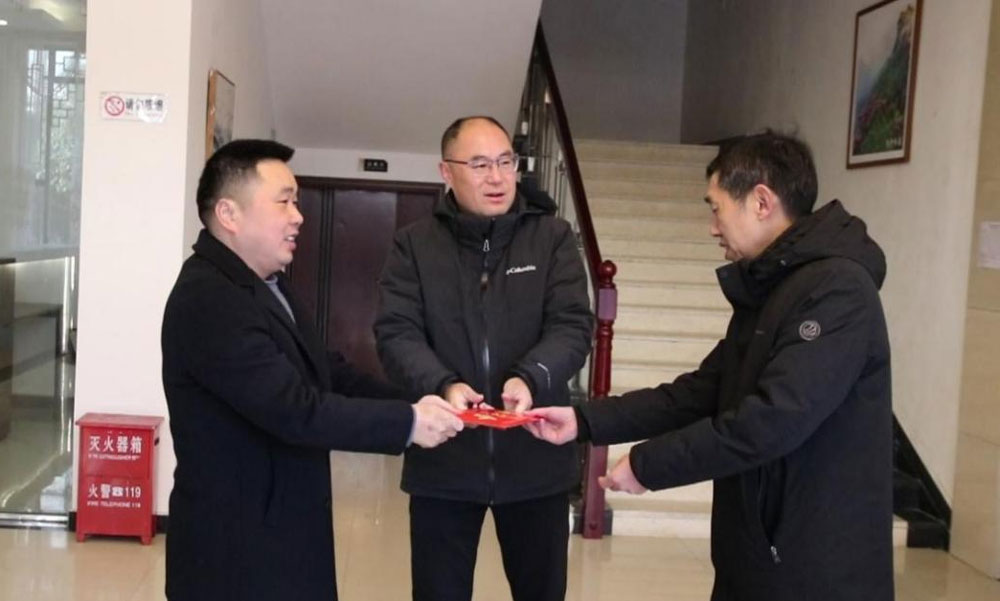 ←&£ 1月(yuè)18日(rì),文(wén)旅新區(qū)黨工(gōng)委委員(÷☆σyuán)、管委會(huì)常務副主任陳軍代表新區(qū)黨工(gōng)委、管委會(h☆≤uì)到(dào)我公司對(duì)一(yī)線基層職工(gōng)代表和(hé)公司進行(¶π xíng)慰問(wèn)并緻以節日(rì)的(de)祝福。