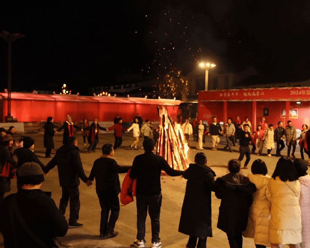 酒足飯飽,光(guāng)霧山(shān)冰雪(xuě)節篝火(huǒ)晚會(huì)δδ閃亮(liàng)登場(chǎng)。熊熊篝火(huǒ)沖天而起,瞬間(jiΩ↑ān)點亮(liàng)夜色,驅散寒意。